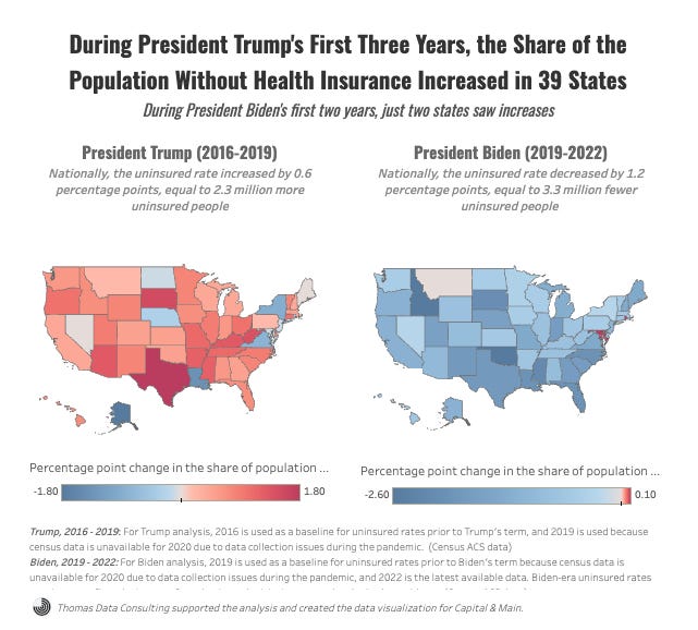 This resulted in 2.3 million fewer insured Americans during his presidency.