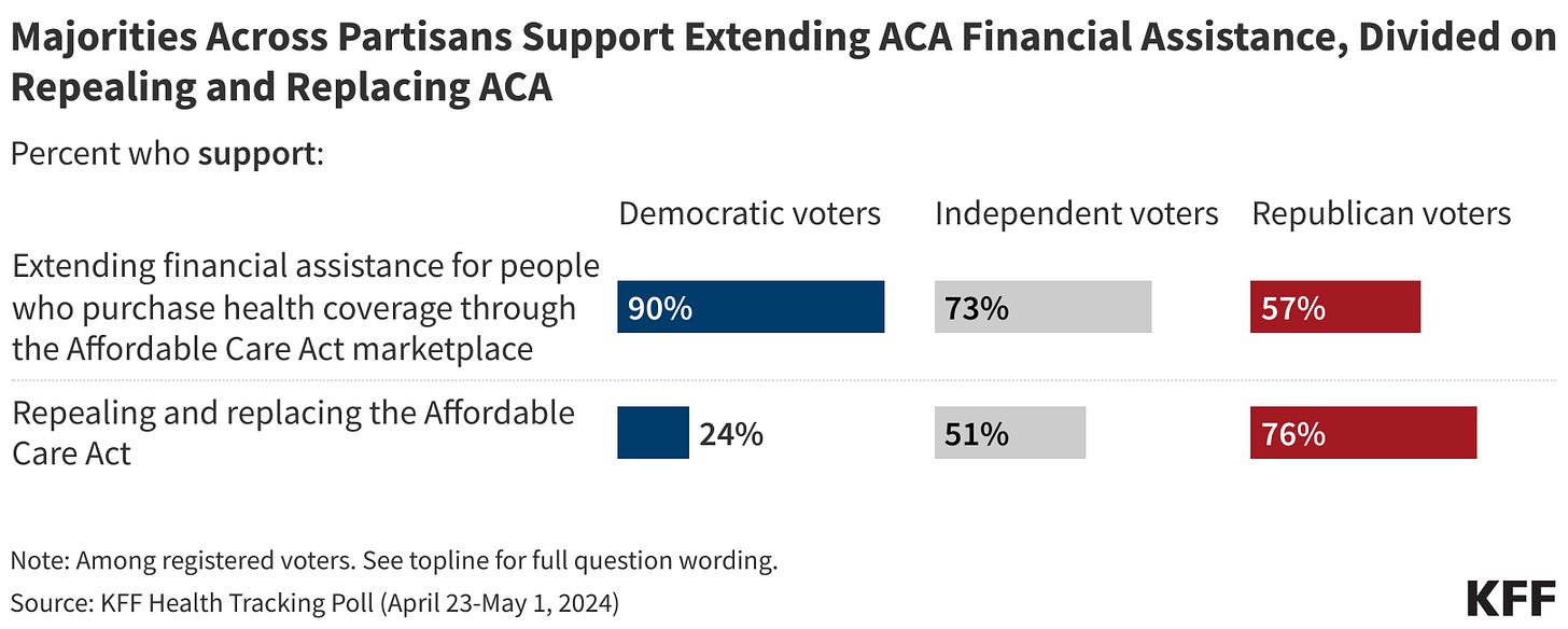 The love for the ACA remains one of the few bi-partisan things in this country. A majority of Democrats, Independents, and Republicans support extending financial assistance for people who purchase their healthcare plans through the exchange.