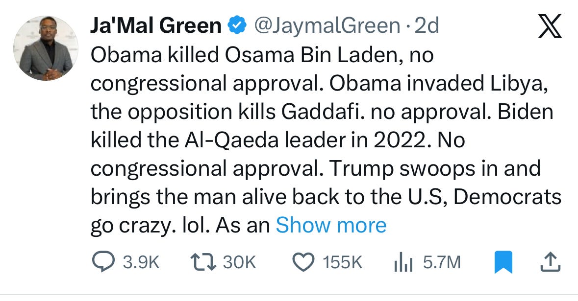 Claim B: This is no different than what Obama did with Bin Laden and in Libya. Democratic opposition is hypocritical.